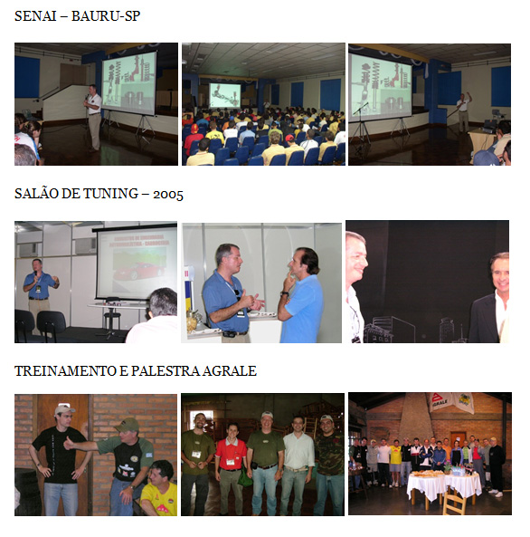 As palestras podem ser feitas sob medida para as necessidades da Empresa, com foco direcionado para Liderança, Gerenciamento Estratégico, Motivação ou Performance, como as que foram feitas para atender a clientes com atividades tão diferentes entre si como Polícia Militar Rodoviária SP, Faculdade de Odontologia USP, Faculdade de Engenharia UNESP, Editora AUTODATA, Revista 4x4, Supermercados CONFIANÇA, VOLVO Construction Equipment, USIMINAS, Comercial BANDEIRANTES Bauru, dentre outras.